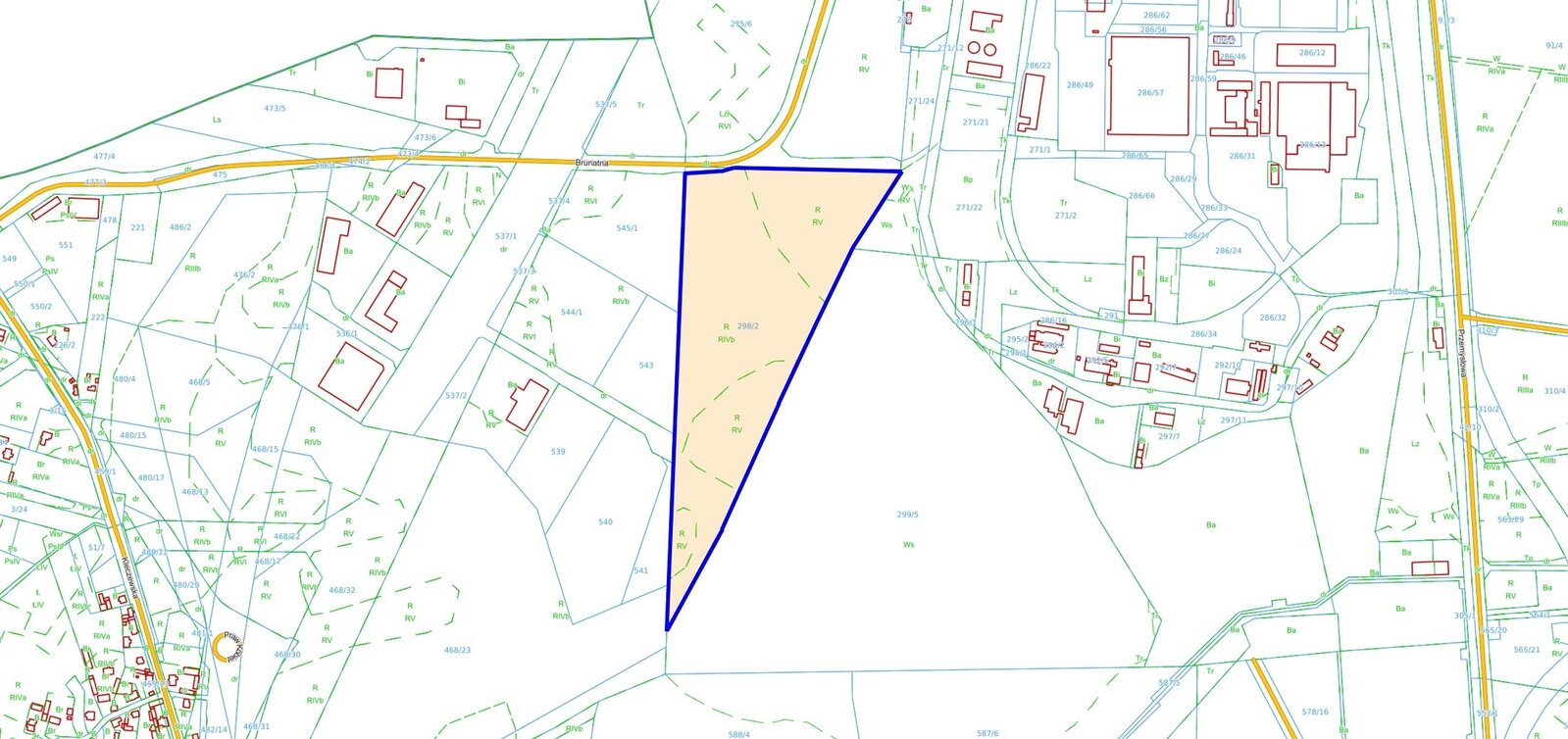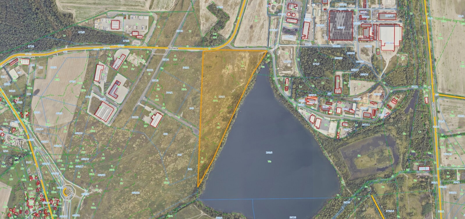Działka 298/2 o powierzchni 9,6304 ha znajduje się przy ulicy Brunatnej. Zgodnie z miejscowym planem zagospodarowania przestrzennego działka oznaczona jest jako wielofunkcyjne tereny aktywizacji gospodarczej - m.in. działalność produkcyjna, usługowa, składowo-magazynkowa, przetwórstwo rolno-spożywcze oraz inne. Część działki znajduje się w strefie ochronnej gazociągu wysokociśnieniowego - 35 m.