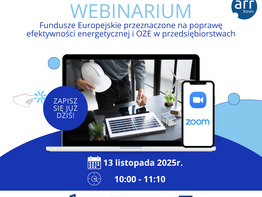 Webinarium „Fundusze Europejskie przeznaczone na wsparcie efektywności energetycznej i OZE w przedsiębiorstwach”